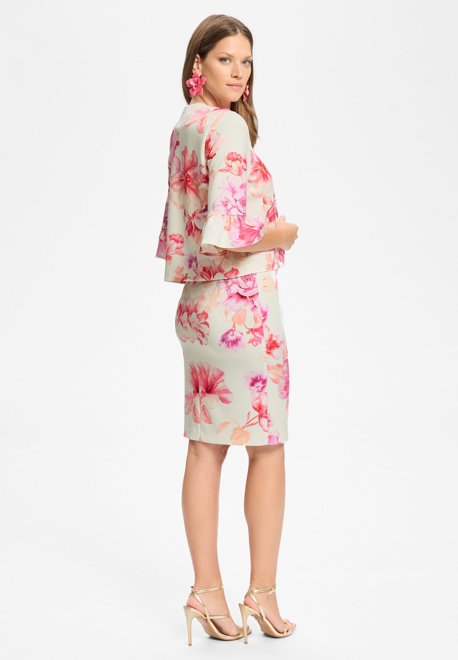 Moderne festliche Jacke mit floralem Print, die Deinem Look eine stilvolle und vielseitige Note verleiht. Perfekt für Hochzeiten, Dinner-Events oder elegante Anlässe, wenn Du Dein Outfit mit einem besonderen Layer ergänzen möchtest. Der leichte Schnitt sorgt für eine feminine Silhouette und angenehmen Tragekomfort. Ideal als vielseitige Eventjacke zu Cocktailkleidern, festlichen Tops oder eleganten Hosen.
