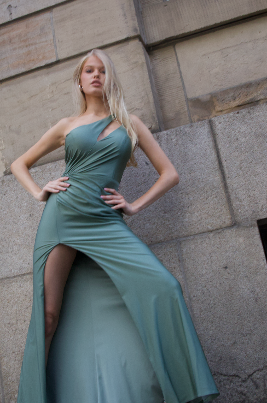 One-Shoulder-Kleid mit Cut-Out und Beinschlitz
