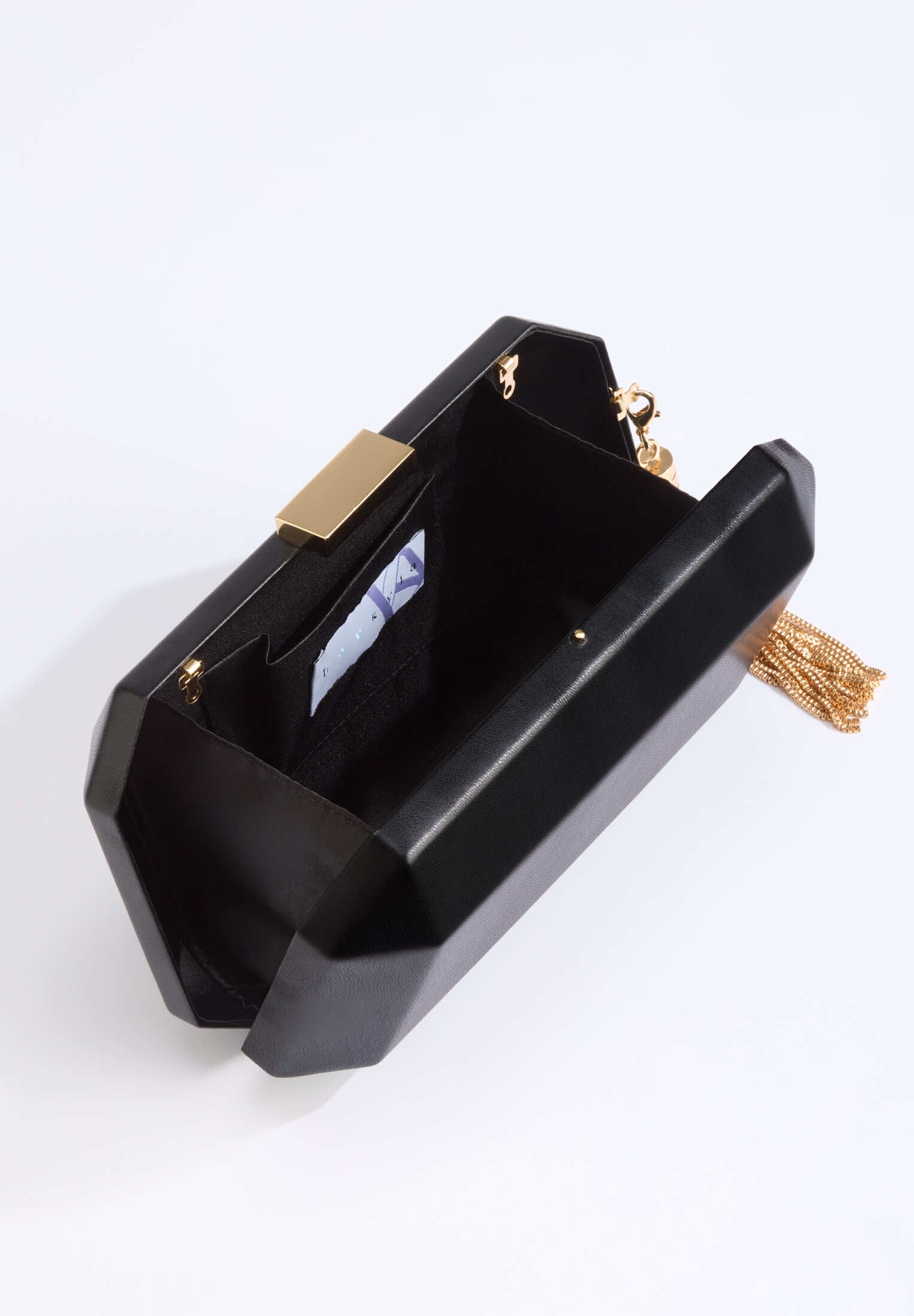 Eine elegante Clutch mit klaren Kanten und schimmerndem Finish – ideal für Abendveranstaltungen, Dinner oder die nächste Party. Der goldene Quastenanhänger verleiht der Tasche einen modernen Twist. Ihr edles und schlichtes Design macht sie zum perfekten Begleiter für stilvolle Nächte. Für einen Look, der auf kleine Details setzt.