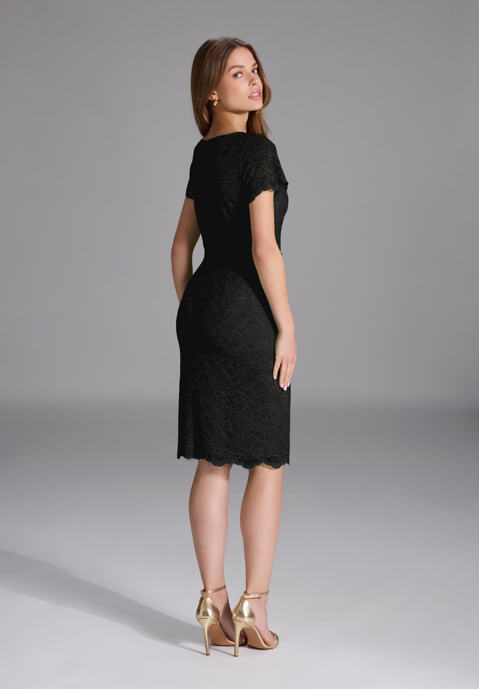 Etui Kleid aus feiner Spitze mit Bogenkante